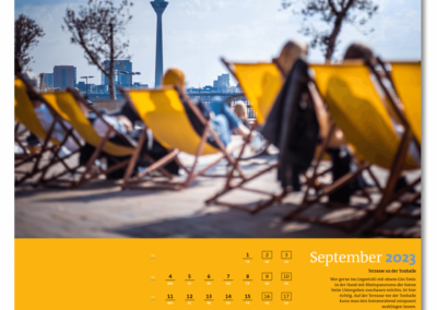 Wenn Sie für 2024 einen Kalender mit Ihrem Unternehmensbranding realisieren möchten, sprechen Sie uns an. Die Planungen für den Düsseldorf-Kalender 2024 laufen bereits.