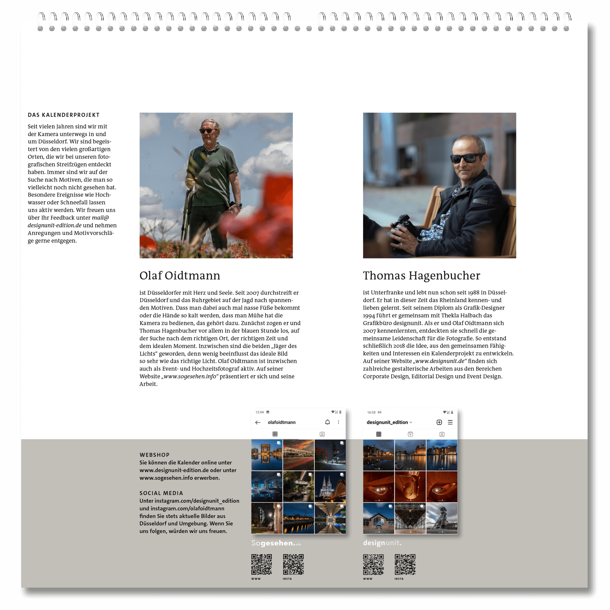 Liebe Kalenderfans, es ist wieder soweit – die Tage werden kürzer und das Jahr geht seinem Ende entgegen. Für das neue Jahr 2024 bringen wir Ihnen wieder mit unserem Wandkalender jeden Monat ein Stück Düsseldorf nach Hause. Auch in diesem Jahr waren wir wieder mit großer Begeisterung in Düsseldorf unterwegs und haben spannende Perspektiven unserer geliebten Stadt eingefangen.